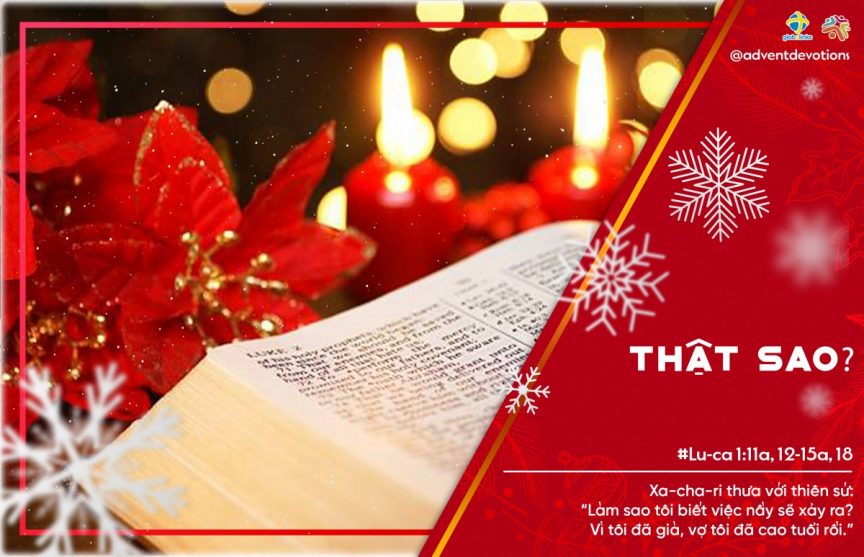 THẬT SAO? Kinh Thánh: “Bấy giờ có một thiên sứ của Chúa hiện đến với Xa-cha-ri… Thấy thiên sứ, Xa-cha-ri bối rối, kinh hãi. Nhưng thiên sứ bảo ông: “Nầy, Xa-cha-ri, đừng sợ! Vì lời cầu nguyện của ngươi đã được nhậm. Ê-li-sa-bét, vợ ngươi, sẽ sinh một con trai; ngươi hãy đặt tên là Giăng.…