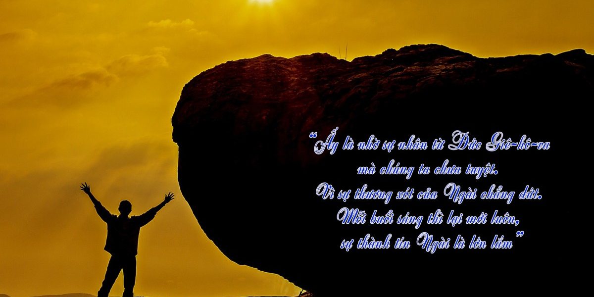 Ca-thương 3:22-23 “Ấy là nhờ sự nhân từ Đức Giê-hô-va mà chúng ta chưa tuyệt. Vì sự thương xót của Ngài chẳng dứt. Mỗi buổi sáng thì lại mới luôn, sự thành tín Ngài là lớn lắm”.