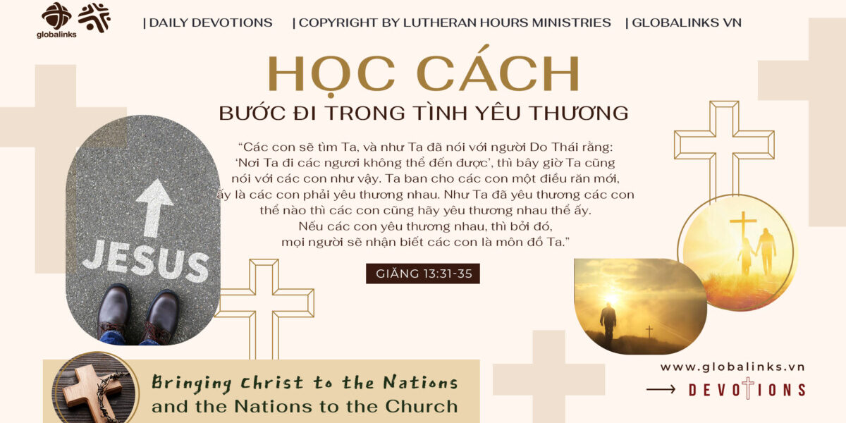 Kinh Thánh: “Khi Giu-đa đi ra rồi, Đức Chúa Jêsus nói: Bây giờ Con Người được tôn vinh, và Đức Chúa Trời được tôn vinh nơi Con Người. Nếu Đức Chúa Trời được tôn vinh nơi Con Người thì Đức Chúa Trời cũng sẽ tôn vinh Con Người trong chính Ngài, và sẽ tôn vinh ngay. Hỡi các con bé nhỏ, Ta không còn ở với các con bao lâu nữa. Các con sẽ tìm Ta, và như Ta đã nói với người Do Thái rằng: ‘Nơi Ta đi các ngươi không thể đến được’, thì bây giờ Ta cũng nói với các con như vậy. Ta ban cho các con một điều răn mới, ấy là các con phải yêu thương nhau. Như Ta đã yêu thương các con thể nào thì các con cũng hãy yêu thương nhau thể ấy. Nếu các con yêu thương nhau, thì bởi đó, mọi người sẽ nhận biết các con là môn đồ Ta.” (Giăng 13:31-35)