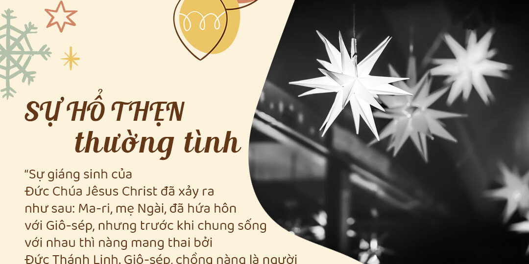 Kinh Thánh: “Sự giáng sinh của Đức Chúa Jêsus Christ đã xảy ra như sau: Ma-ri, mẹ Ngài, đã hứa hôn với Giô-sép, nhưng trước khi chung sống với nhau thì nàng mang thai bởi Đức Thánh Linh. Giô-sép, chồng nàng là người công chính, không muốn bêu xấu nàng nên định âm thầm từ hôn.” (Ma-thi-ơ 1:18-19)
