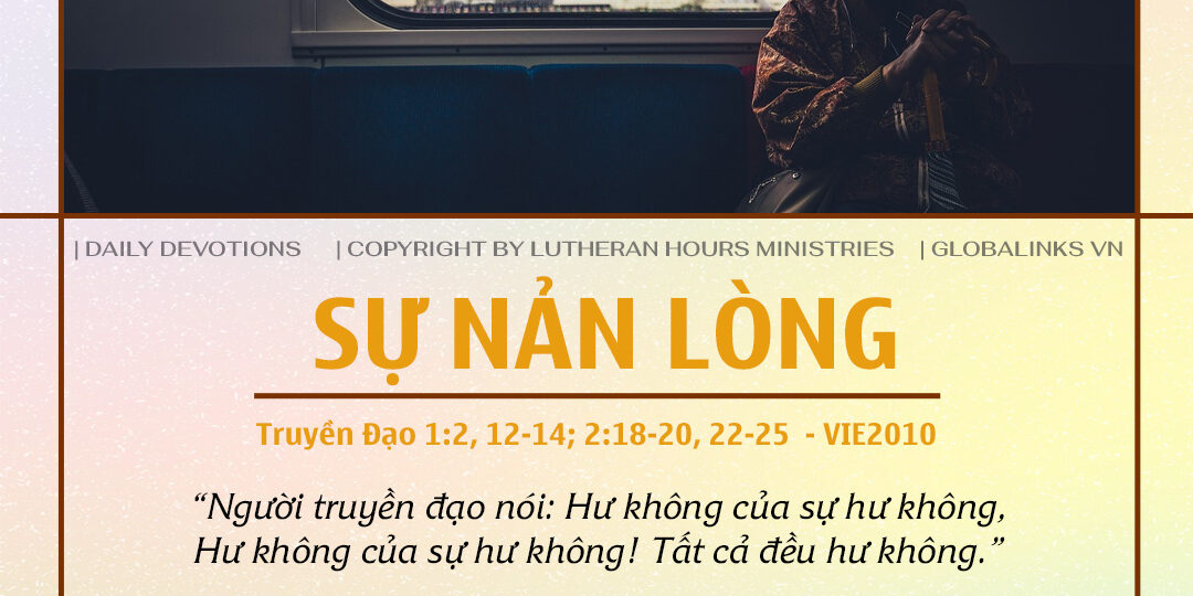 Kinh Thánh: “Người truyền đạo nói: Hư không của sự hư không, hư không của sự hư không! Tất cả đều hư không. Ta là người truyền đạo đã làm vua Y-sơ-ra-ên tại Giê-ru-sa-lem. Ta chuyên tâm tìm hiểu và dùng sự khôn ngoan mình để khảo sát mọi việc xảy ra dưới bầu trời. Đó là công việc lao khổ mà Đức Chúa Trời đã giao cho loài người lo thực hiện. Ta đã quan sát mọi việc xảy ra dưới ánh mặt trời; kìa, tất cả đều hư không theo luồng gió thổi…. Ta cũng ghét mọi công việc mà ta đã vất vả làm ra dưới ánh mặt trời, vì phải để lại cho người sống sau mình. Ai biết được rằng người ấy sẽ khôn ngoan hay là ngu dại? Dù sao hắn sẽ cai quản mọi việc mà ta đã lấy sự lao khổ và khôn ngoan làm ra dưới ánh mặt trời. Điều đó cũng là sự hư không. Bởi thế, ta trở nên thất vọng về mọi công việc ta đã lao khổ làm ra dưới ánh mặt trời… Vậy, con người được gì qua mọi công việc vất vả và lao tâm khó nhọc mà họ làm dưới ánh mặt trời? Suốt ngày, người chỉ gặp những chuyện khổ đau; công việc người đầy khó nhọc, đến nỗi ban đêm tâm trí cũng chẳng được nghỉ ngơi. Điều đó cũng là sự hư không. Không gì tốt hơn cho con người là ăn, uống, và hưởng phước của công lao mình. Ta thấy điều đó cũng đến từ bàn tay Đức Chúa Trời. Vì ai là người được ăn và hưởng sự vui sướng hơn ta?” (Truyền-đạo 1:2, 12-14; 2:18-20, 22-25)