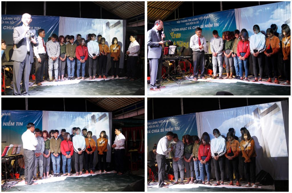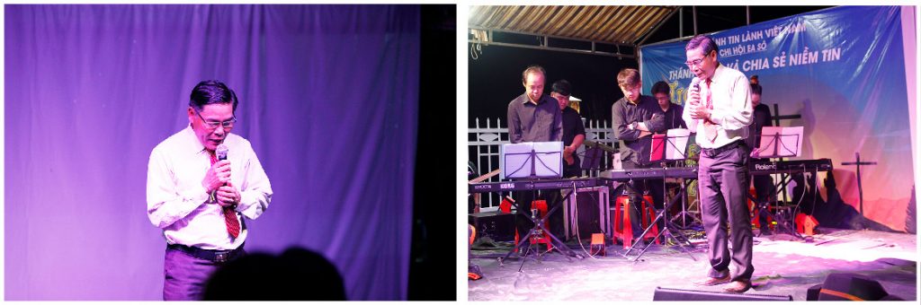 Mục sư Nguyễn Xuân Mai cầu nguyện dâng chương trình ca nhạc thánh truyền giảng lên cho Chúa
